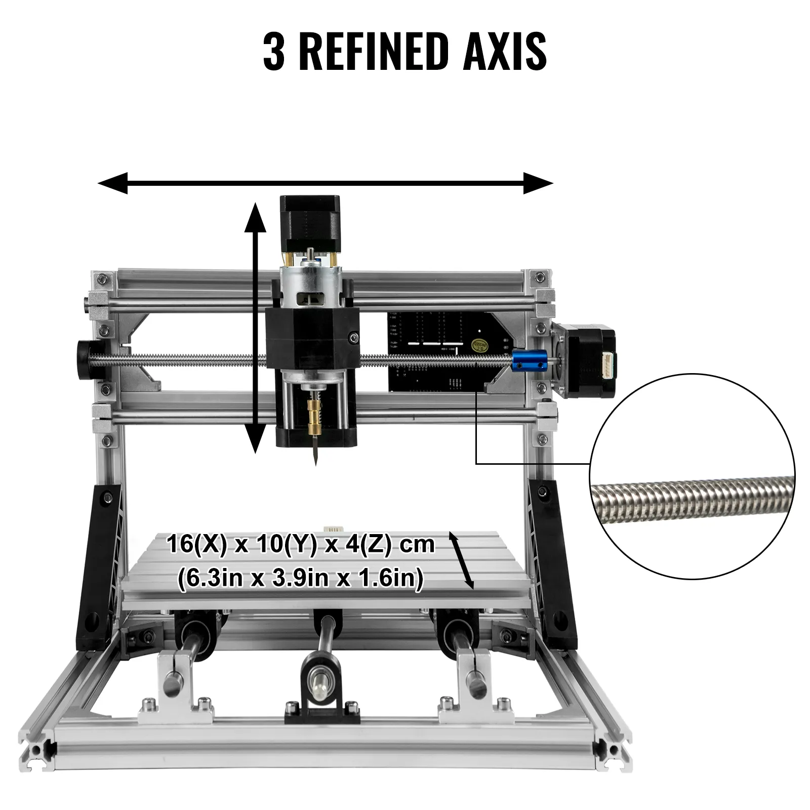 3 axis is able to realize plane engraving, with effective working travel of 16(X)x10(Y)x4(Z)cm (6.3"x3.9"x1.6"). The driving units consists of T8 stainless steel screw rods.