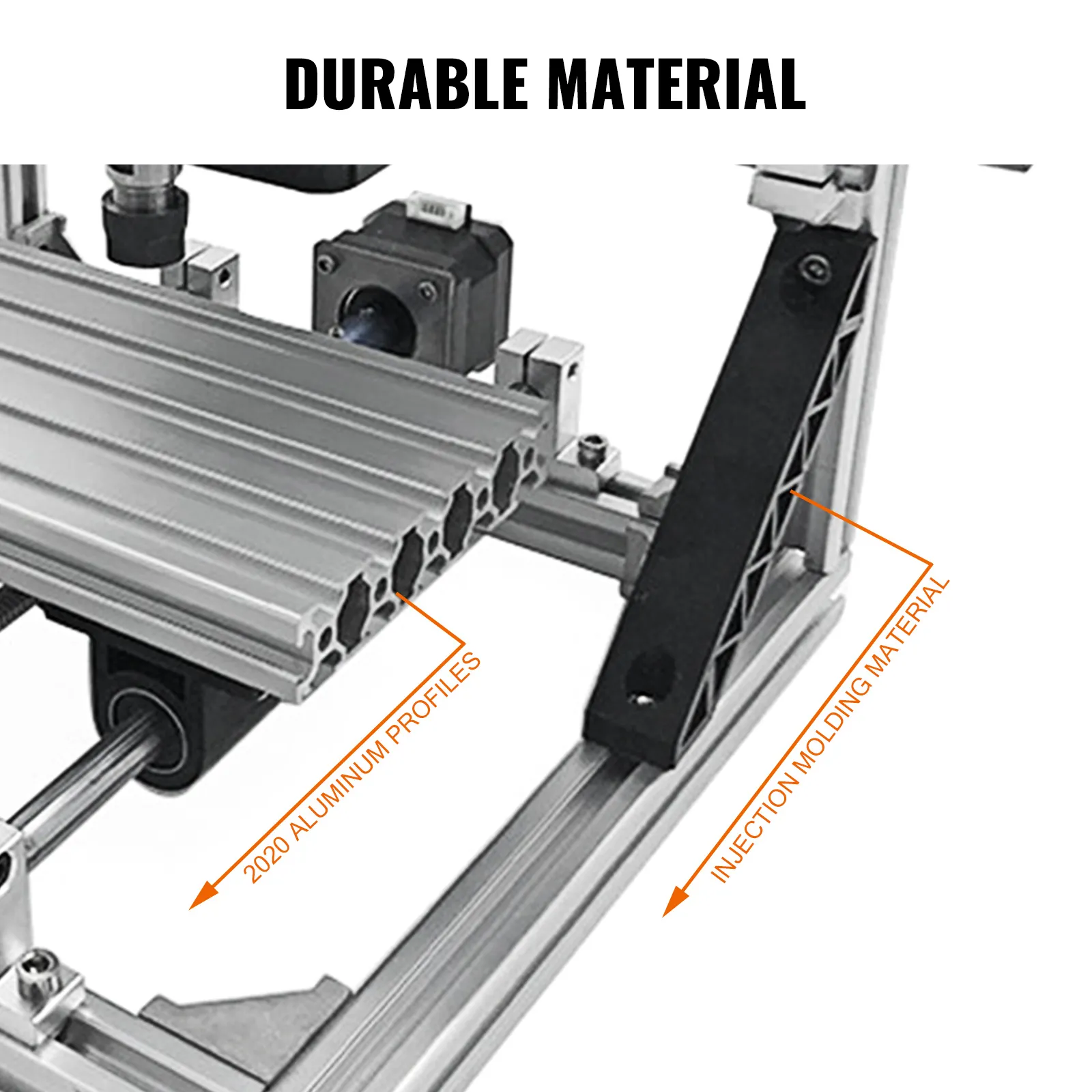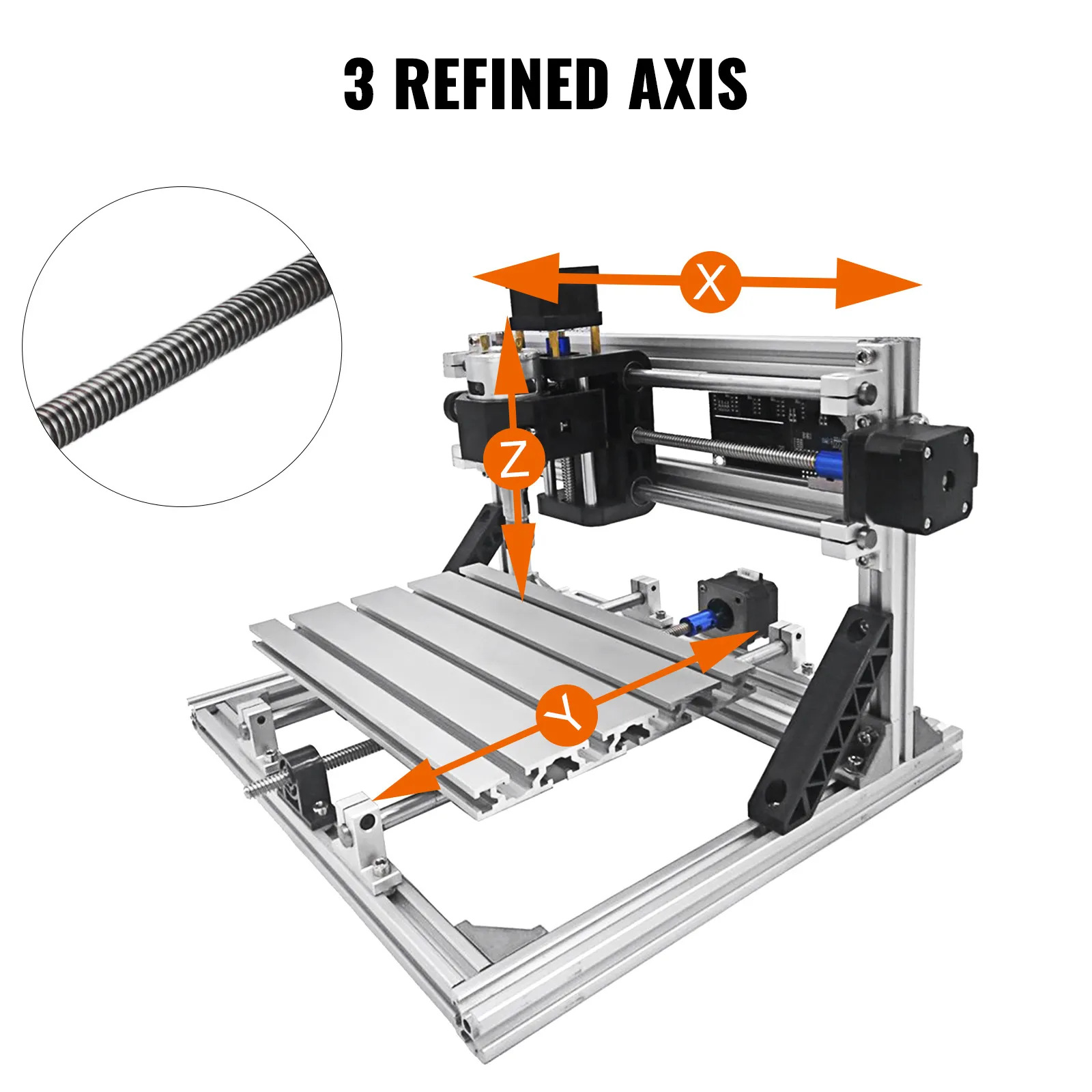 Equipped with 3 axis, able to realize plane engraving, with effective working travel of 240(X)x180(Y)x40(Z)mm. The driving units consist of T8 stainless steel screw rods, whose lead distance is 5mm, and the double copper nuts can eliminate the difference.