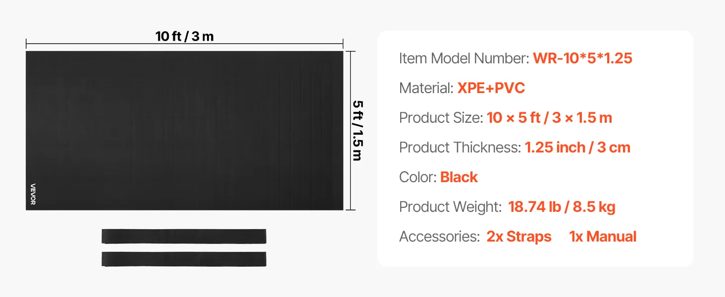 10x5ft Wrestling Mat: Measuring 10x5ft, this martial arts mat provides spacious and flexible coverage for home gyms, garage training areas, and professional venues