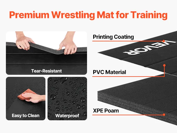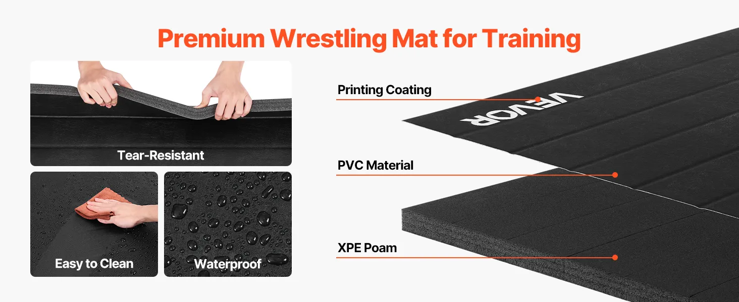 Durable PVC Material: Made of tear-proof and waterproof PVC, this durable mat is easy to clean and built to last—an ideal waterproof PVC mat for wrestling and more