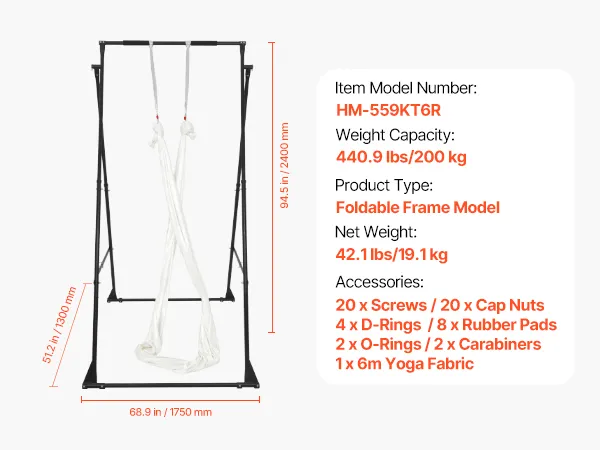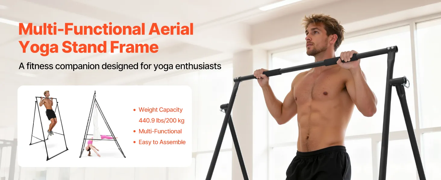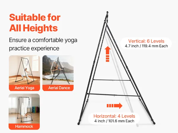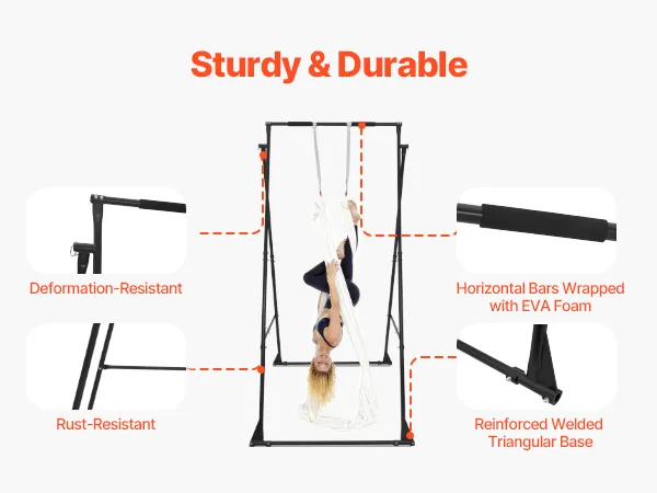 Strong Support Base: Experience sturdy support with this lightweight 42.1 lbs/19.1 kg yoga swing stand that holds up to 440.9 lbs/200 kg. Crafted from premium steel tubing, the frame delivers a stable platform for yoga enthusiasts and professionals alike, ensuring consistent performance and smooth stretching every session