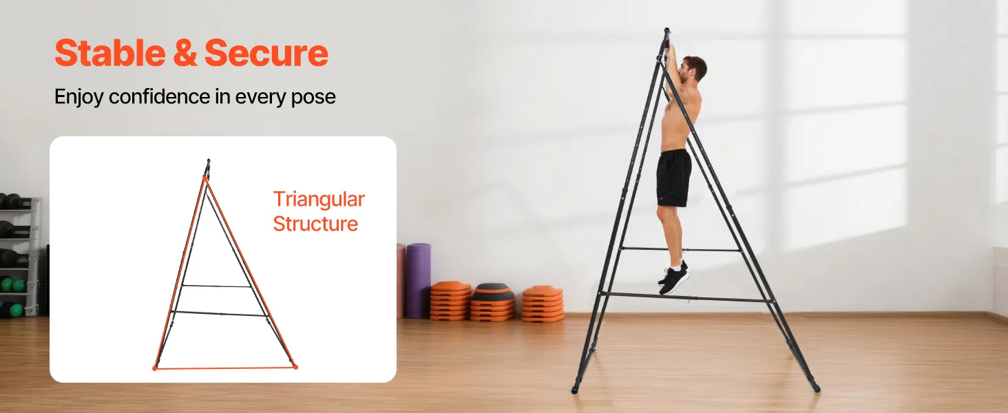 Durable Stretch Base: This yoga trapeze stand features premium steel tubing and passes multiple salt spray tests for long-lasting durability. The triangular structure with non-slip feet ensures steady support during all poses. Built for daily use, it provides a reliable platform for smooth yoga practice every session