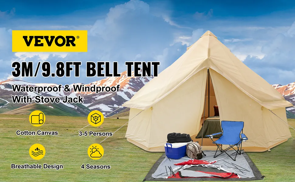 This 3-5 person canvas glamping bell tent offers enough space for family camping. Its open size of 118.1 x 117.1 x 118.5 (98.4 inches) ensures everyone has room to relax. It is ideal for families or groups that need extra room while camping. With a large door size of 70.8 x 59 inches, accessibility is easy. It provides a comfortable camping experience for all outdoor enthusiasts. The breathable canvas material guarantees a pleasant indoor environment. Use this spacious tent for your next family adventure. You can create lasting memories.